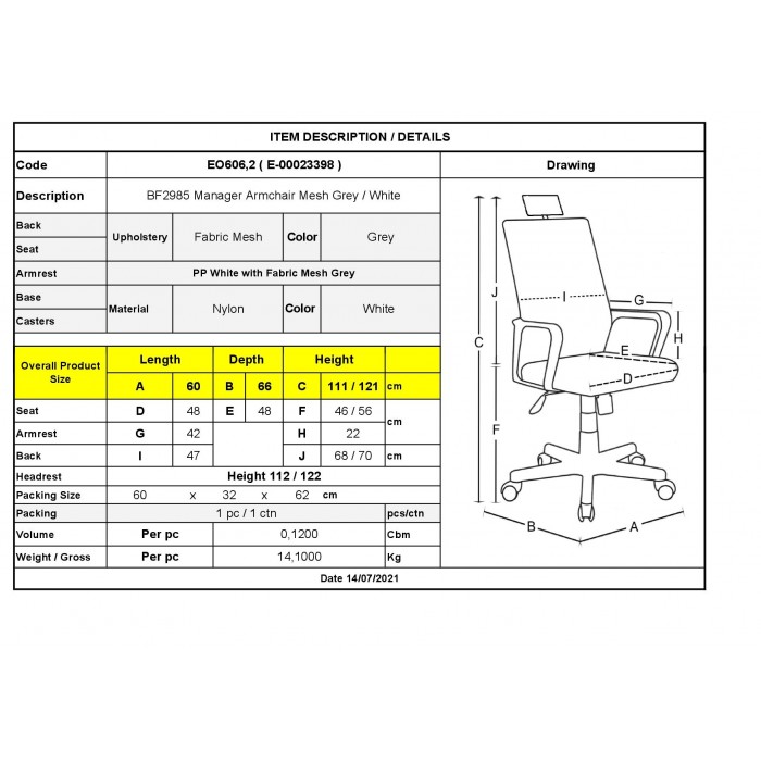 ΕΟ606,2 BF2985 Πολυθρόνα Διευθυντή Άσπρο/Mesh ΓκριBF2985 Πολυθρόνα Διευθυντή