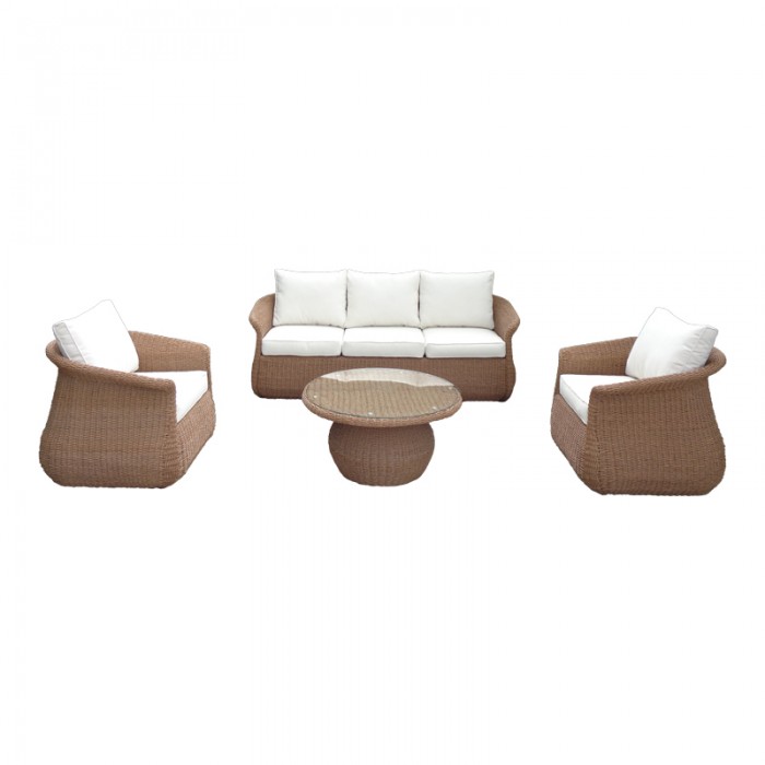 Σαλόνι κήπου Tropicana pakoworld 4τεμ pe rattan σε καφέ απόχρωση - ύφασμα μπεζ
