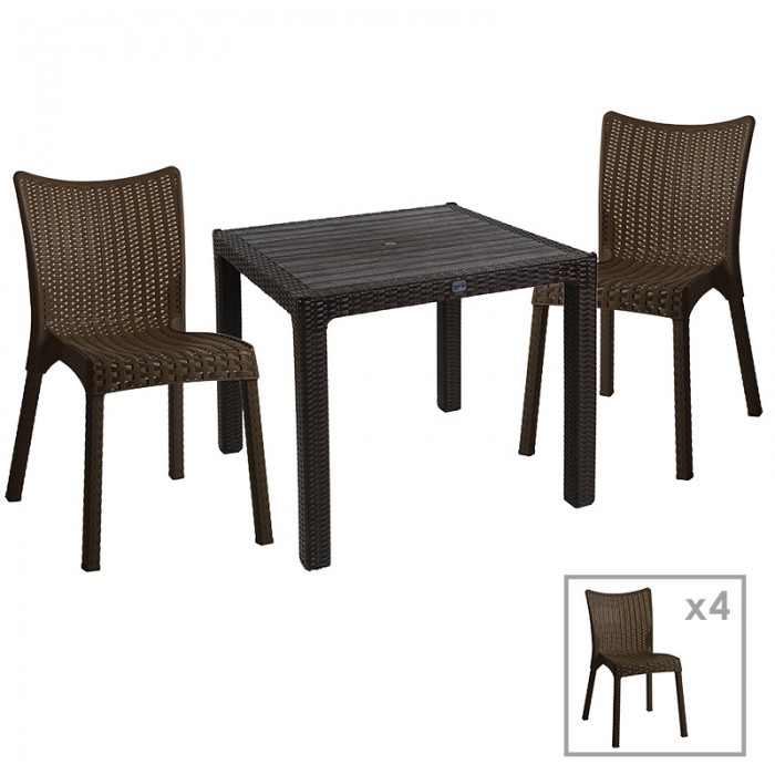 Τραπεζαρία κήπου Explore-Confident pakoworld σετ 5τεμ PP καφέ 90x90x73,5εκ.
