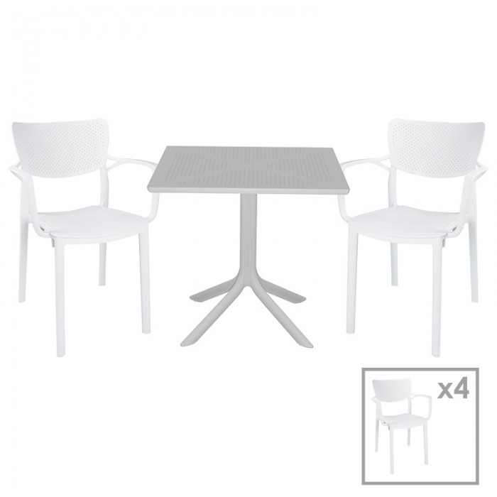 Τραπεζαρία κήπου Groovy-Fontline pakoworld σετ 5τεμ PP λευκό 80x80x74,5εκ.