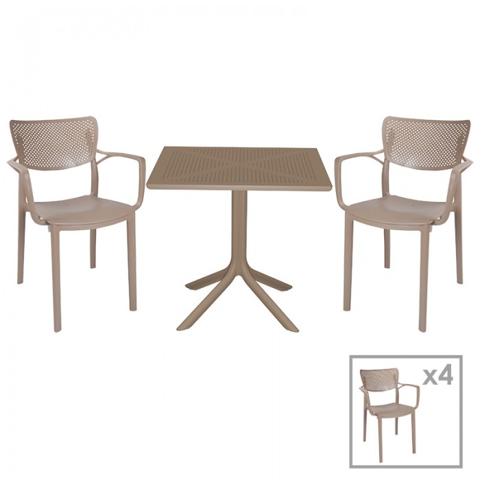 Τραπεζαρία κήπου Groovy-Frontline pakoworld σετ 5τεμ PP cappuccino 80x80x74,5εκ.