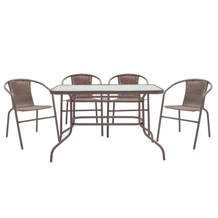 Τραπεζαρία κήπου Valor-Obbi σετ 5τεμ pakoworld pe καφέ-μέταλλο 110x60x70εκ