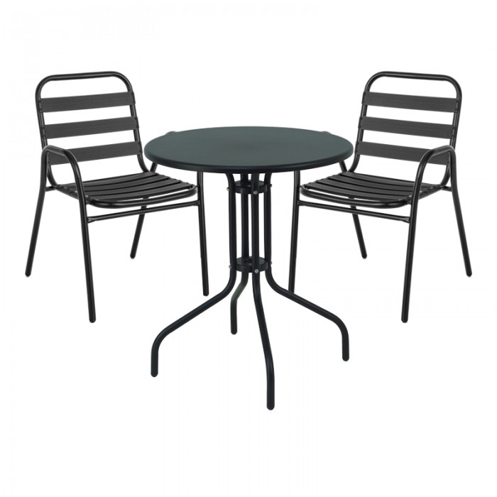 Tραπεζαρία Sussie-Vergo Ι pakoworld σετ 3τεμ μαύρο μέταλλο-αλουμίνιο Φ60x70εκ