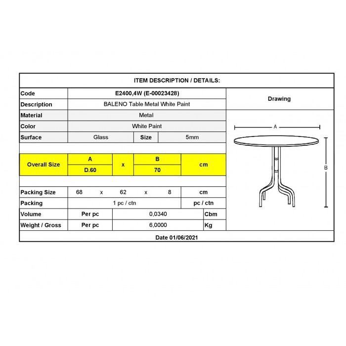 Ε2400,4W BALENO Τραπέζι Φ60cm Μεταλλικό ΆσπροBALENO Τραπέζι Στρογγυλό Εξωτερικού Χώρου / Κήπου / Βεράντας