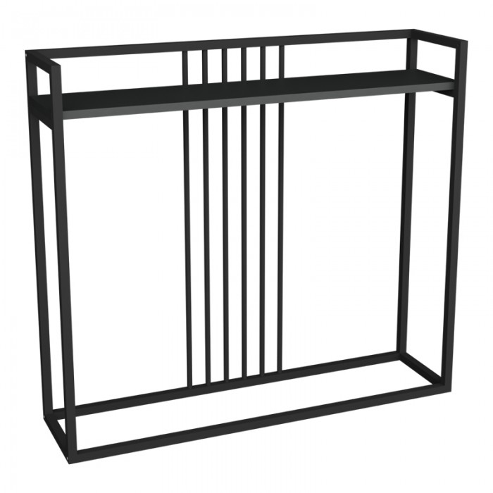 Φανταστείτε την είσοδο του σπιτιού σας να μεταμορφώνεται σε έναν καλαίσθητο και φιλόξενο χώρο. Ο στιβαρός μαύρος μεταλλικός σκελετός δημιουργεί μια μοντέρνα και δυναμική βάση, ενώ το ανθρακί ράφι προσθέτει ζεστασιά και μια αίσθηση πολυτέλειας. Είναι ο τέλειος καμβάς για να εκφράσετε το προσωπικό σας στυλ.
