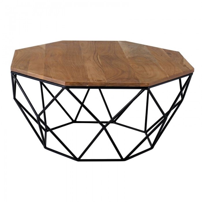 GLEN Τραπεζάκι Σαλονιού Καθιστικού, Μέταλλο Βαφή Μαύρο, Ξύλο Ακακία Φυσικό 1τμχ