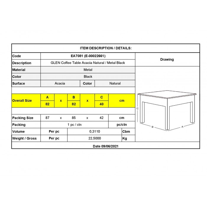ΕΑ7081 GLEN Τραπ.Σαλονιού 82x82x40cm Ακακία Φυσικό/Μεταλ.ΜαύροGLEN Tραπεζάκι Σαλονιού / Καθιστικού