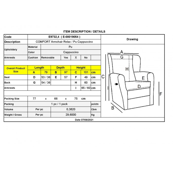 Ε9732,4 COMFORT Πολυθρόνα Relax Pu CappuccinoCOMFORT Πολυθρόνα Relax