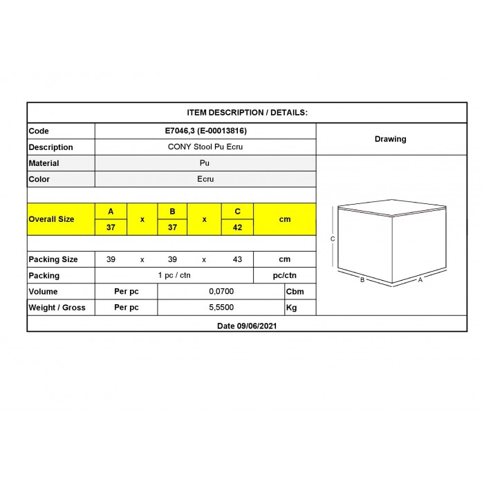 Ε7046,3 CONY Σκαμπώ PU Εκρού 37x37x42cmCONY Σκαμπό Βοηθητικό