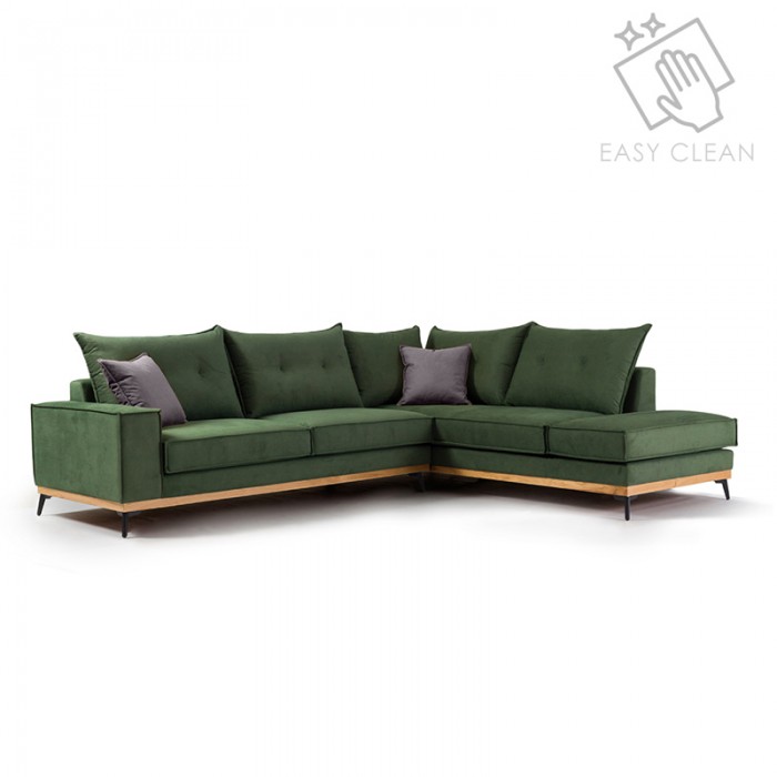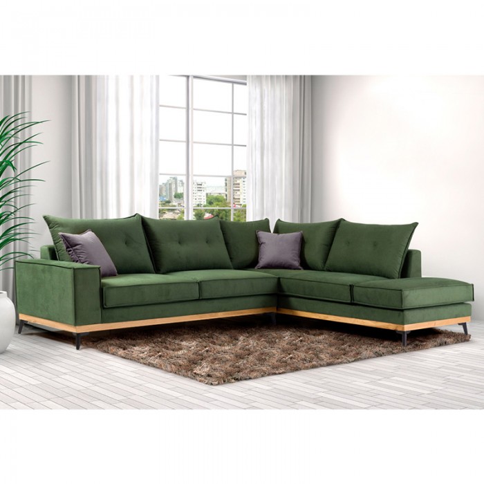 Γωνιακός καναπές δεξιά γωνία Luxury II pakoworld ύφασμα ανθρακί-κυπαρισσί 290x235x95εκ Χρόνος παράδ..
