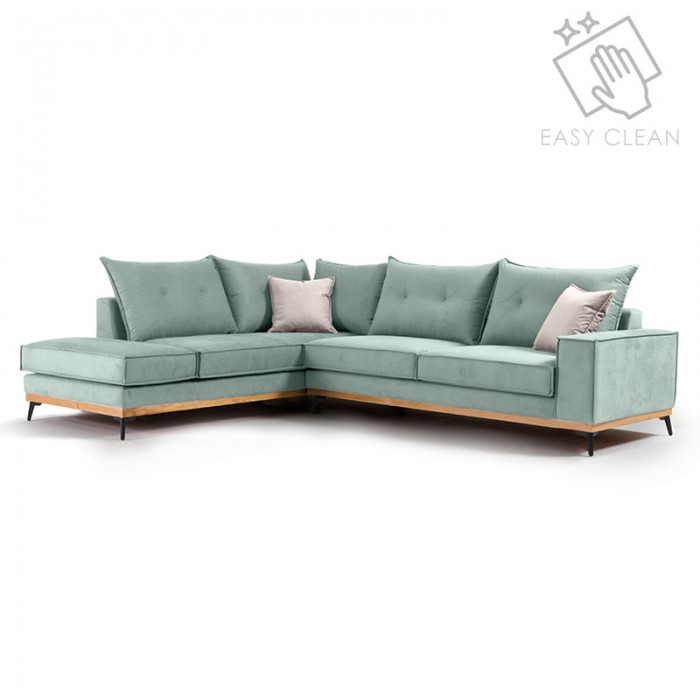 Γωνιακός καναπές αριστερή γωνία Luxury II pakoworld ύφασμα elephant-ciel 290x235x95εκΧρόνος παράδοση..