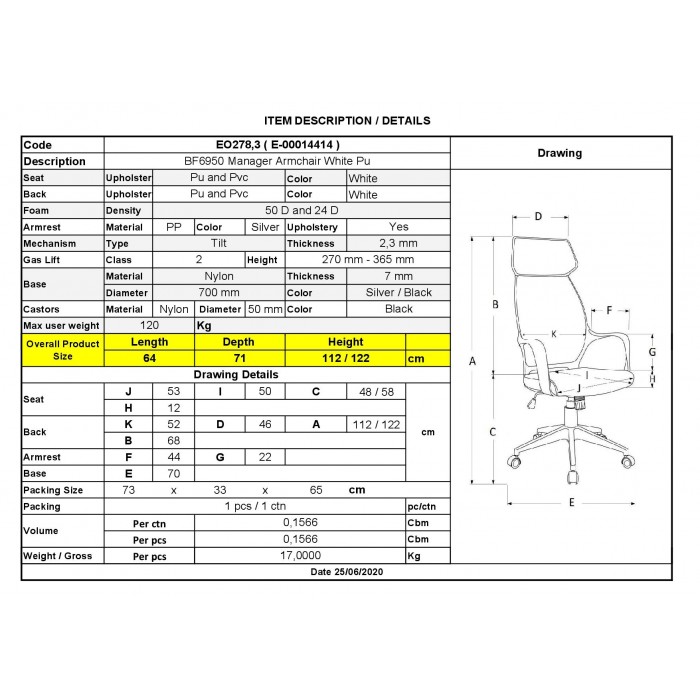 ΕΟ278,3 BF6950 Πολυθρόνα Διευθυντή Pu ΆσπροBF6950 Πολυθρόνα Γραφείου Διευθυντή