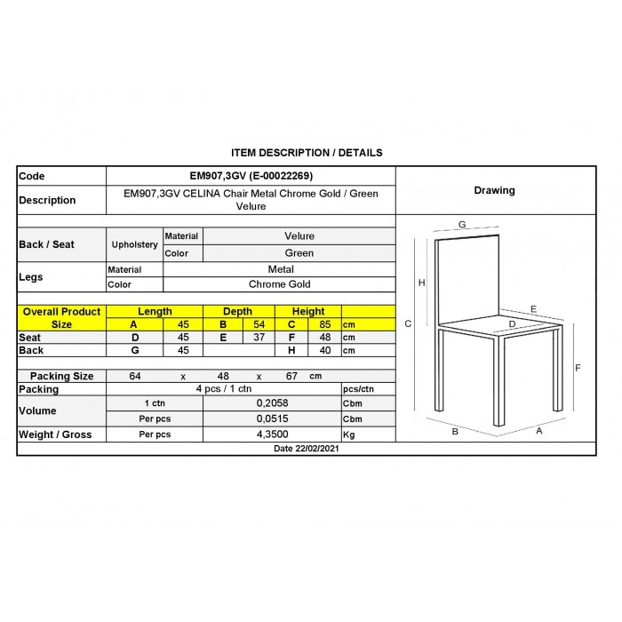 ΕΜ907,3GV CELINA Καρέκλα Steel Χρώμιο Χρυσό/Velure ΠράσινοΠροέλευση : P.R.C.