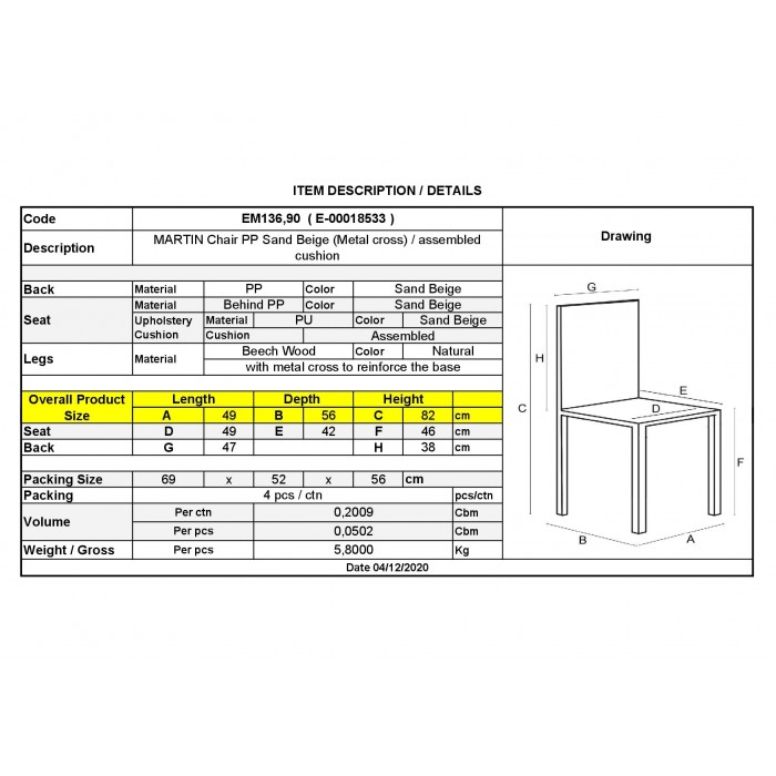 ΕΜ136,90 MARTIN Metal Cross Καρέκλα PP Sand Beige (Ξύλ.πόδι-Μοντ/νη Tαπετσαρία)/ProMARTIN Καρέκλα