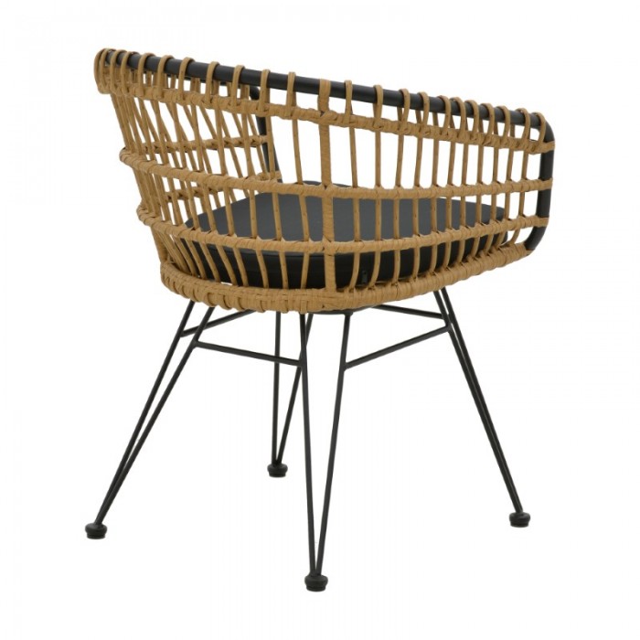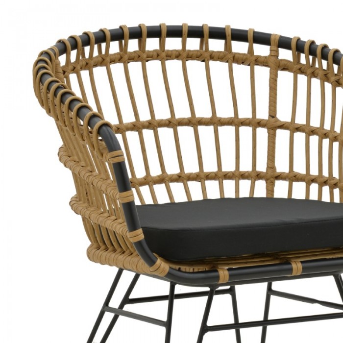 Πολυθρόνα Naoki pakoworld pe rattan -metal σε φυσική απόχρωση με μαύρα πόδια/μαξιλάρι 62x60x80εκ