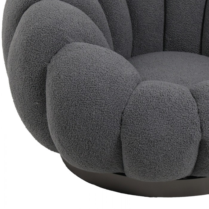 Πολυθρόνα περιστρεφόμενη Nester pakoworld μπουκλέ ύφασμα σε γκρι απόχρωση 98x97x69εκ