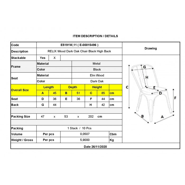 Ε5191W,11 RELIX Wood Dark Oak Καρέκλα Steel ΜαύροRELIX Καρέκλα
