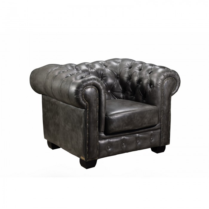 CHESTERFIELD 689 Πολυθρόνα Σαλονιού - Καθιστικού, Δέρμα, Απόχρωση Antique Grey 1τμχ