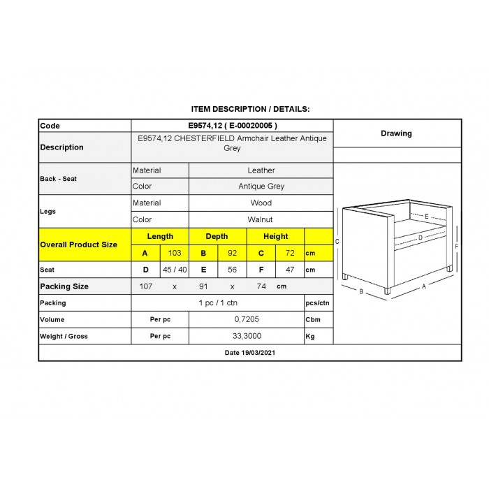 Ε9574,12 - CHESTERFIELD 689 Πολυθρόνα Δέρμα Antique Grey 103x92x72cmΠολυθρόνα Σαλονιού / Καθιστικού