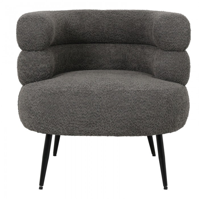 Πολυθρόνα Foleja pakoworld μπουκλέ ύφασμα σε γκρι σκούρο απόχρωση με μάυρα μεταλλικά πόδια 76x75x72εκ