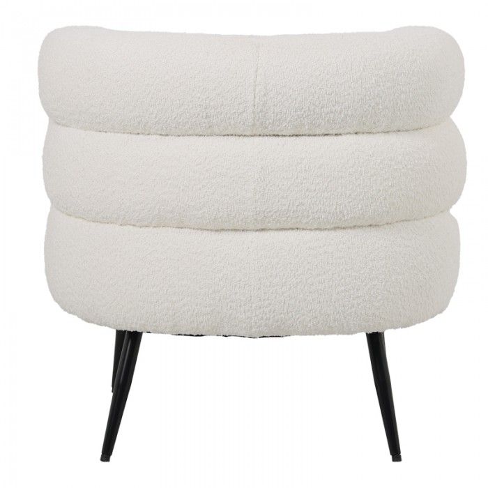 Πολυθρόνα Foleja pakoworld μπουκλέ ύφασμα σε λευκή απόχρωση με μάυρα μεταλλικά πόδια 76x75x72εκ