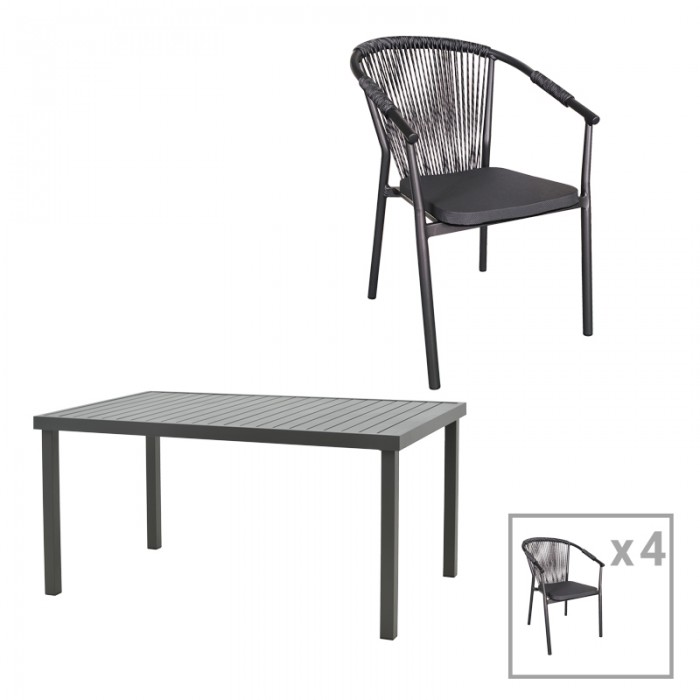 Τραπεζαρία Convince -Kliton A σετ 5τεμ pakoworld αλουμίνιο σε ανθρακί απόχρωση 150x80x74εκ