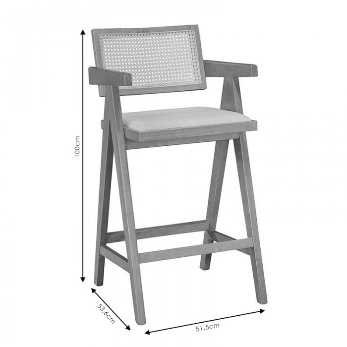 Σκαμπό bar με μπράτσα Winslow pakoworld ξύλο rubberwood ανοικτό καρυδί-pvc rattan φυσικό-ύφασμα γκρι..