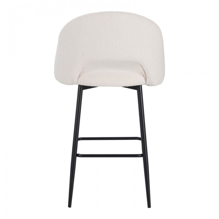 Σκαμπο μπαρ Masebo pakoworld μπουκλέ ύφασμα σε λευκή απόχρωση με μαύρα μεταλλικά πόδια 48x52x97εκ