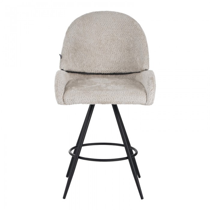 Σκαμπο μπαρ περιστρεφόμενο Morea pakoworld μπουκλέ ύφασμα σε μπεζ απόχρωση με μαύρα μεταλλικά πόδια 68x66x82.5εκ