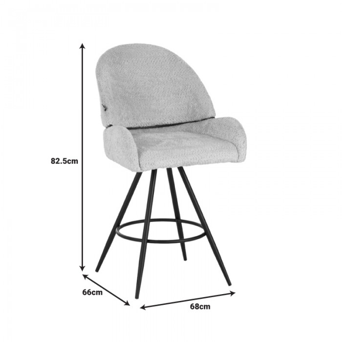 Σκαμπο μπαρ περιστρεφόμενο Morea pakoworld μπουκλέ ύφασμα σε μαύρη απόχρωση με μαύρα μεταλλικά πόδια 68x66x82.5εκ
