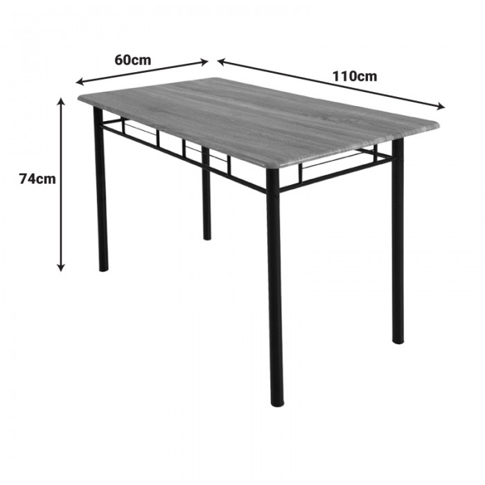 Τραπεζαρία Roza II pakoworld σετ 5τμχ mdf σε γκρι απόχρωση με γκρι μεταλλικά πόδια 110x60x74εκ