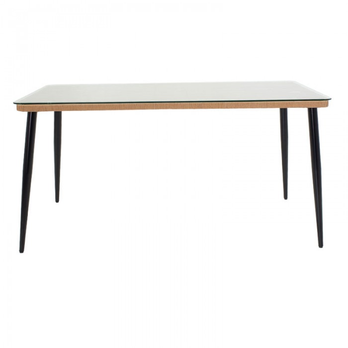 Τραπέζι Naoki pakoworld γυάλινο- pe rattan σε φυσική απόχρωση με μαυρα πόδια 140x80x78εκ