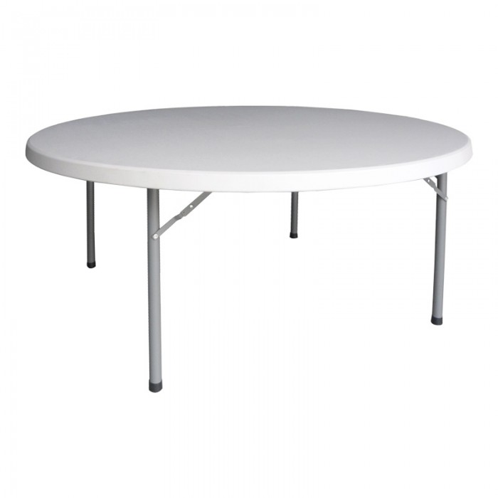 Τραπέζι βαλίτσα catering Comfort pakoworld πτυσσόμενο στρόγγυλο σε λευκή απόχρωση Φ180x74εκ
