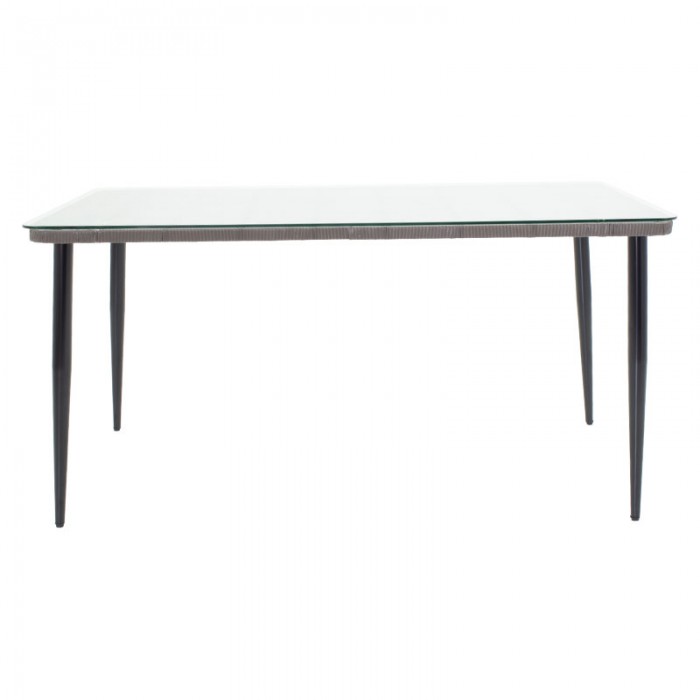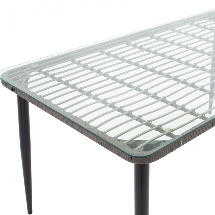 Τραπέζι Naoki pakoworld γυάλινο- pe rattan σε φυσική απόχρωση με μαυρα πόδια 140x80x78εκ