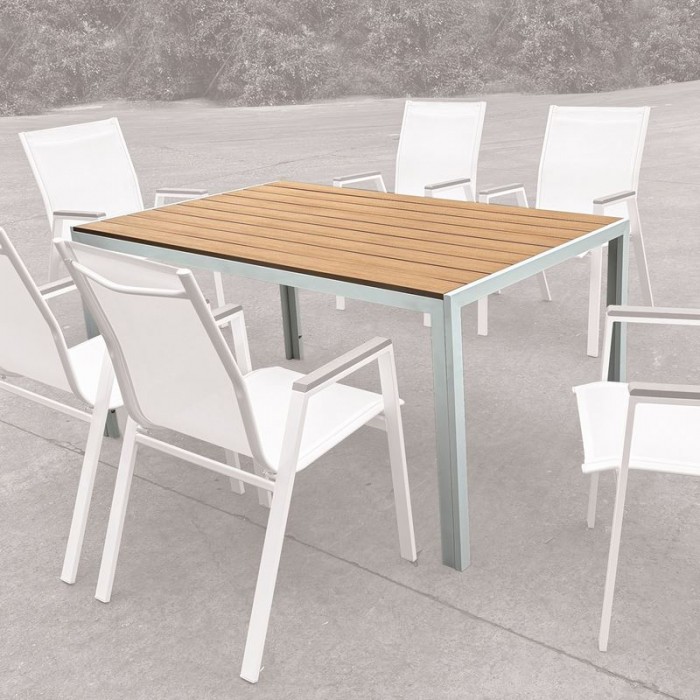 VIRNA Τραπέζι Κήπου-Βεράντας, Μέταλλο Βαφή Άσπρο, Polywood Φυσικό 1τμχ