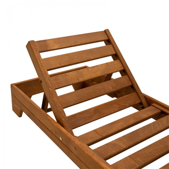 Για επιπλέον αντοχή στο χρόνο συνίσταται η τακτική ενυδάτωση του ξύλου της ξαπλώστρας με συντηρητικά, χρώματα εμποτισμού ξύλου, ή ειδικά λάδια για να διατηρήσει την άριστη κατάσταση της. Προσφέρει τη δυνατότητα να ρυθμίσετε την κλίση του ύψος της σε πέντε θέσεις.