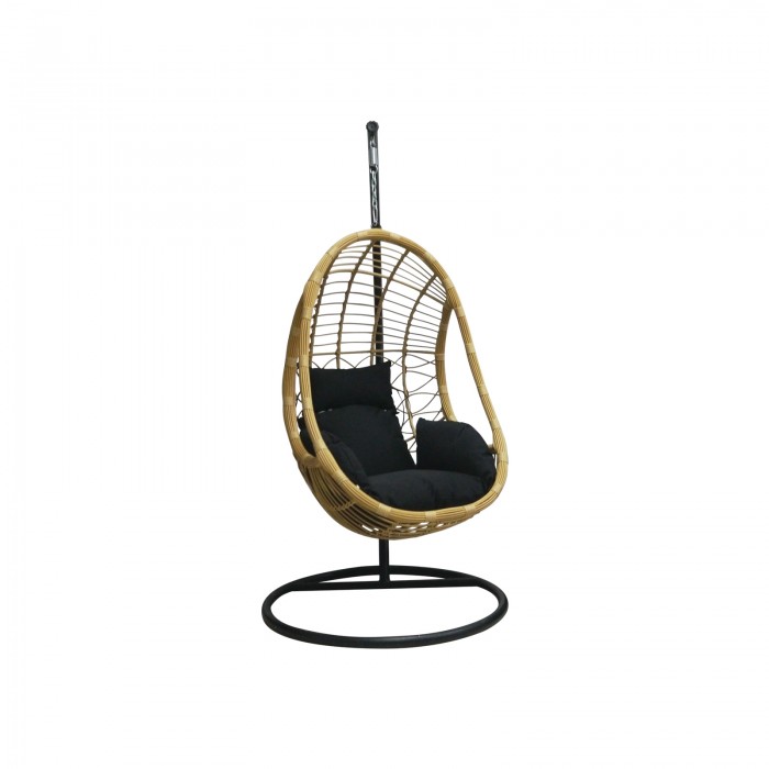 SALSA Κρεμαστή Πολυθρόνα Μέταλλο Βαφή Μαύρο, Wicker Φυσικό, Μαξιλάρι Μαύρο 1τμχ